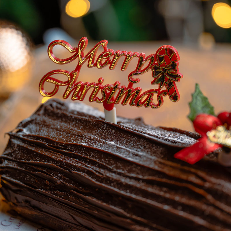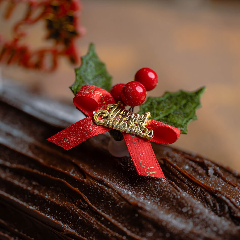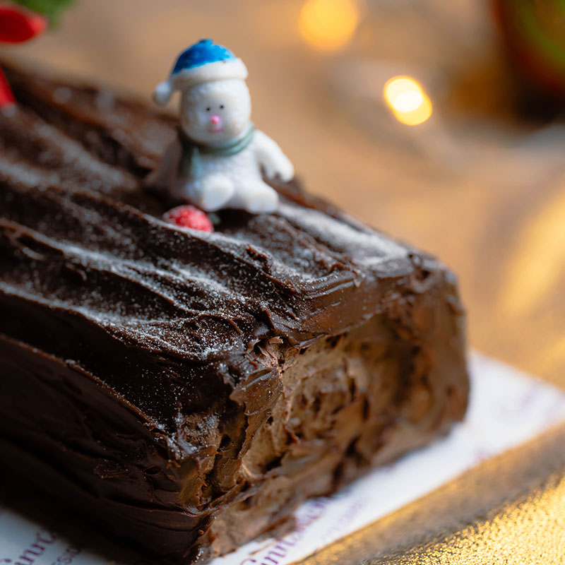 Rich, moist chocolate sponge rolled with silky chocolate butter cream and coated in a luscious chocolate frosting. Decorated with a festive finish, it’s a classic christmas indulgence.
